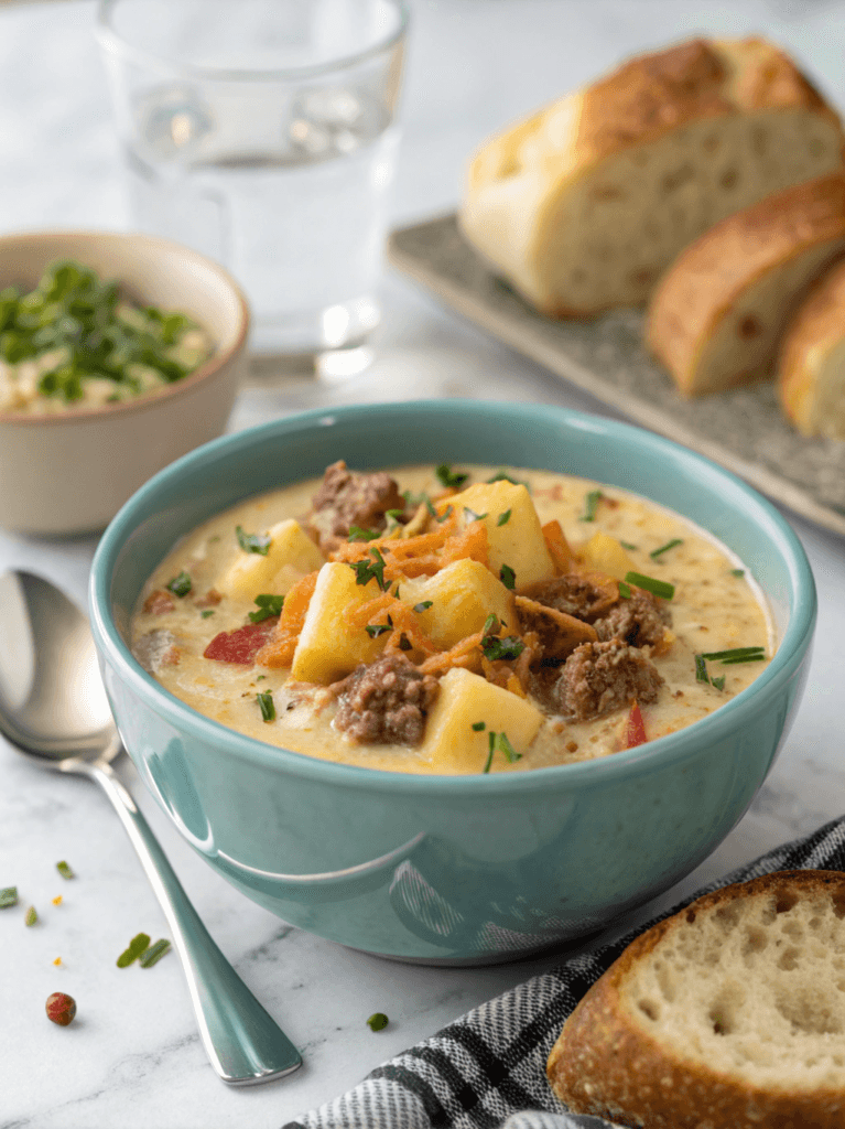 Cheesy Hamburger Potato Soup: Hearty Comfort Bowl for All