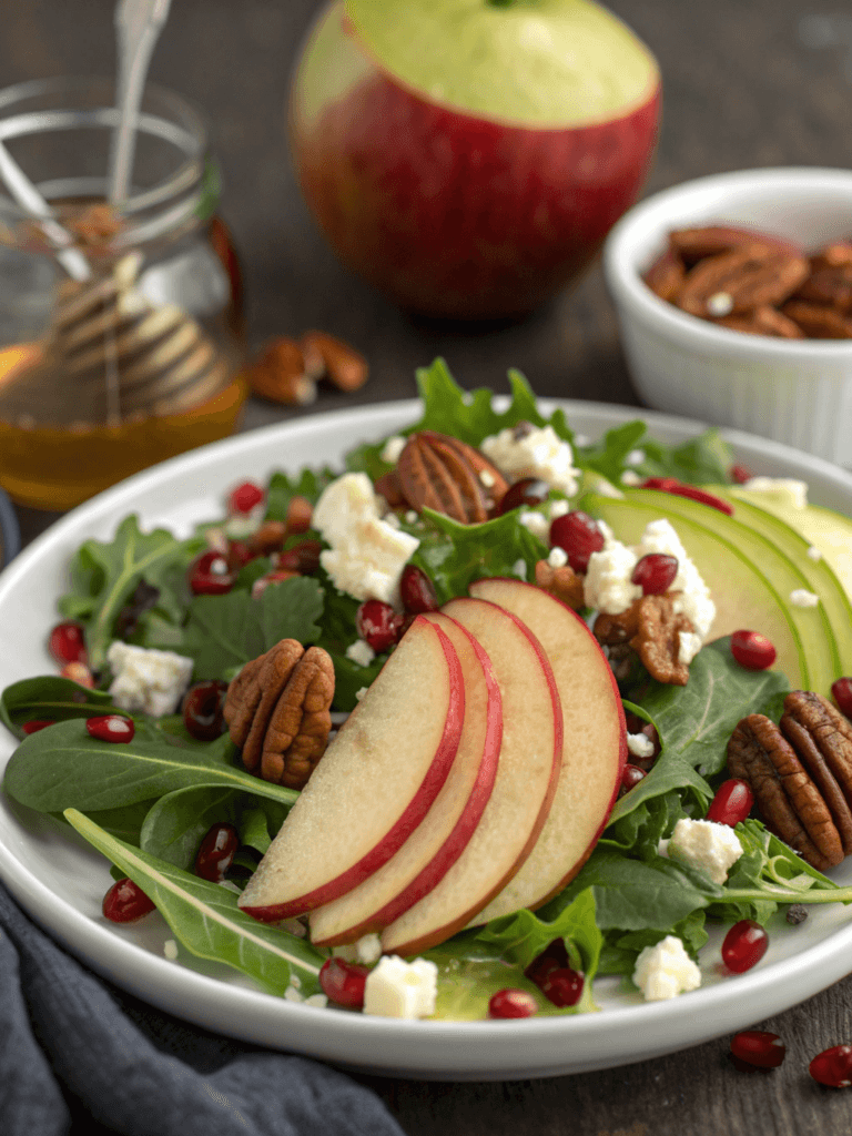 This Honeycrisp Apple Feta Salad is not only delicious but also nutritious. It’s rich in fiber from the apples and greens, protein from the feta and pecans, and vitamins from the fresh produce. The olive oil provides healthy fats, while the honey offers a natural sweetener.
