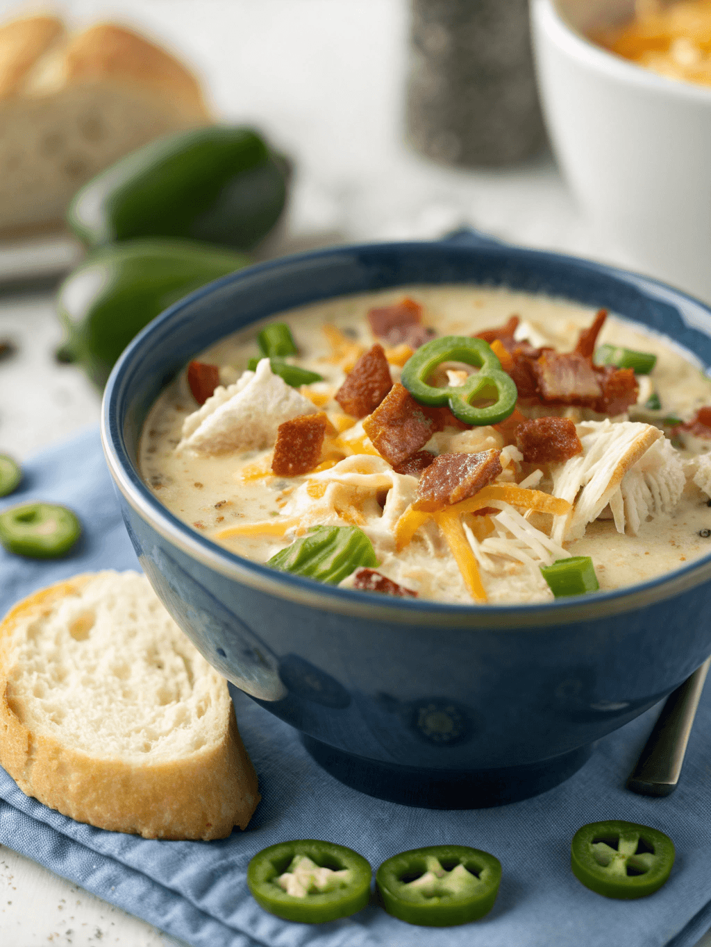 - Serve and Garnish: Ladle the hot Jalapeño Popper Chicken Soup into bowls. Garnish generously with crumbled bacon, fresh cilantro, and a few reserved slices of fresh jalapeño for an extra kick.
