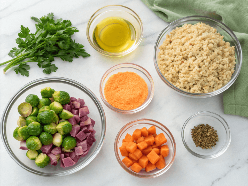 Preheat your oven to 400°F (200°C). On a large baking sheet, toss the cubed sweet potatoes and halved Brussels sprouts with 2 tablespoons of olive oil, smoked paprika, salt, and pepper. Spread them out in a single layer and roast for 20-25 minutes, stirring halfway through, until golden and tender.