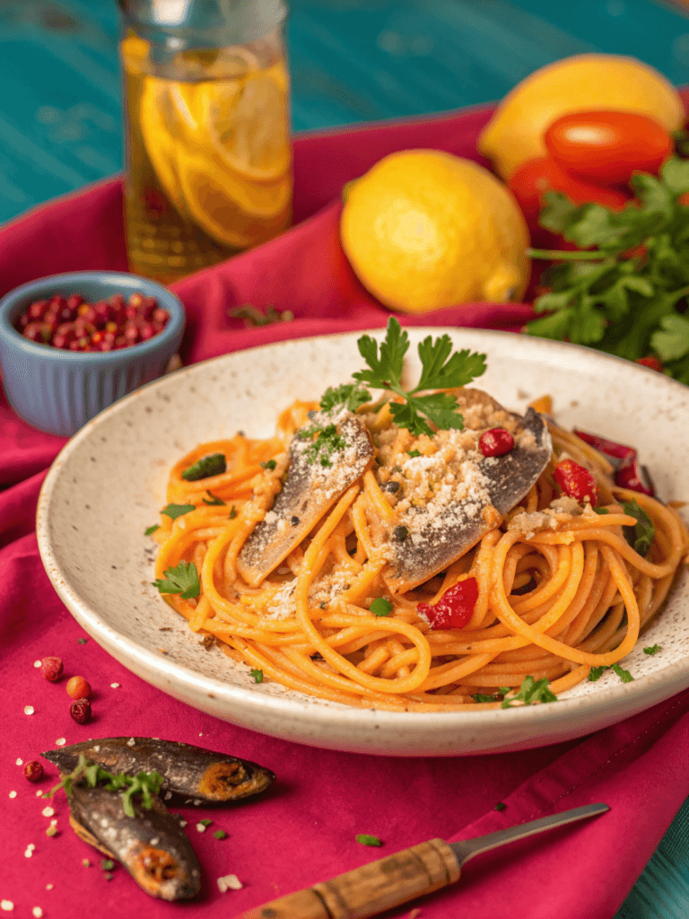 While it’s best served immediately, you can prepare the sardine sauce in advance and reheat it gently when ready to serve. Cook the pasta fresh and combine just before serving for the best texture.